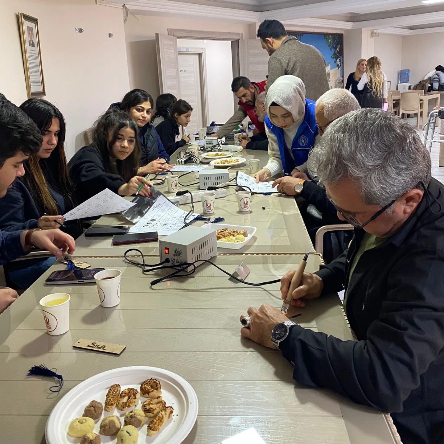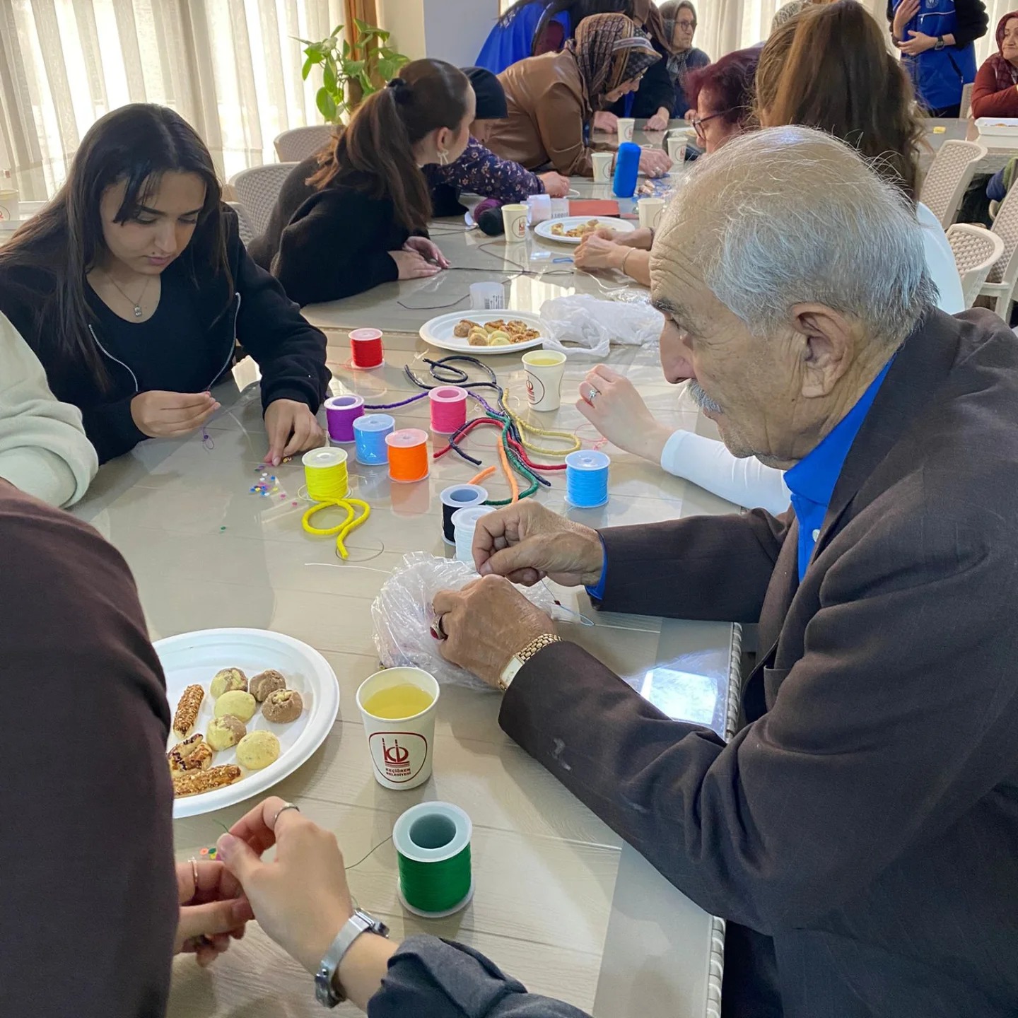 Ziyaret kapsamında bez çanta boyama, örgü, bileklik, ahşap yakı kitap ayracı yapımı gibi atölyeler gerçekleştirildi. Atölyelerde öğrencilerimiz ve huzurevi sakinleri bir araya gelerek ortak çalışmalar ortaya koydu. Bu esnada öğrencilerimiz, büyükleriyle sohbet etme imkânı da buldu. Onlara “Gençliğinize geri dönebilseydiniz neyi farklı yapardınız?”, “Hayatınızın en güzel anını tekrar yaşamak isteseniz hangi an olurdu?” gibi sorular yönelttiler. Atölyelerin sonunda, huzurevi sakinleri ve öğrencilerimize yaptıkları el ürünleri hatıra olarak kaldı.