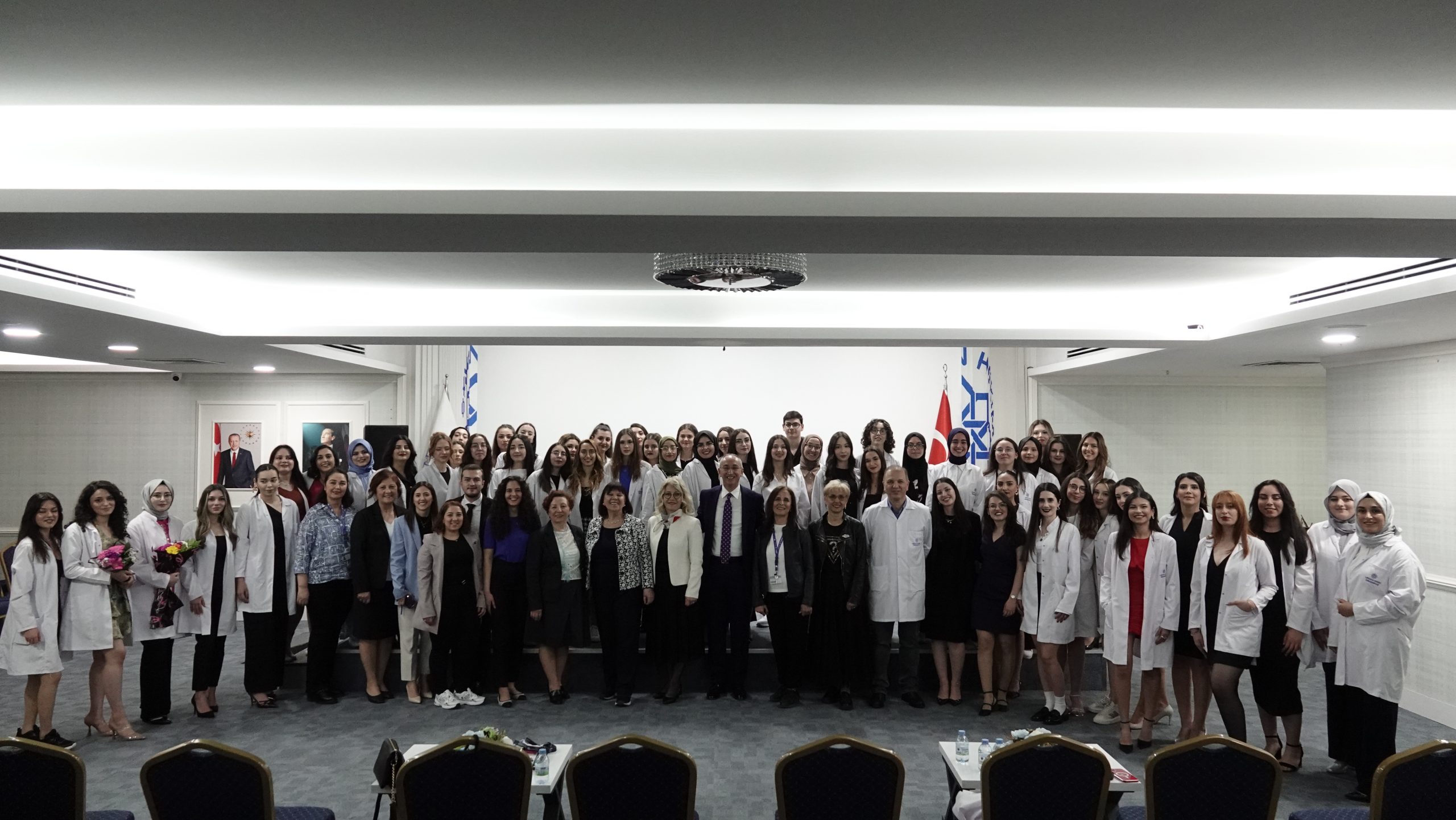 Lokman Hekim Üniversitesi Sağlık Bilmleri Fakültesi Beslenme ve Diyetetik bölümü 1. sınıf öğrencilerimiz beyaz önlüklerini giydi. 30 Nisan 2024, Salı günü üniversitemiz A blok konferans salonunda gerçekleştirilen beyaz önlük giyme töreni, üniversitemiz yönetimi, bölüm akademisyenleri, öğrencilerimiz ve ailerlerinin katılımı ile gerçekleştirildi. Saflığın ve temizliğin sembolü beyaz önlüklerini giyen 1. sınıf öğrencilerimiz, bölüm akademisyenlerinden meslek ile ilgili tavsiyelerini alırken, törende öğrencilerimizi yalnız bırakmayan aileleri duygusal anlar yaşadı. Beyaz önlüklerini giyen öğrencilerimiz tebrik eder, eğitim ve meslek hayatlarında başarılar dileriz.
