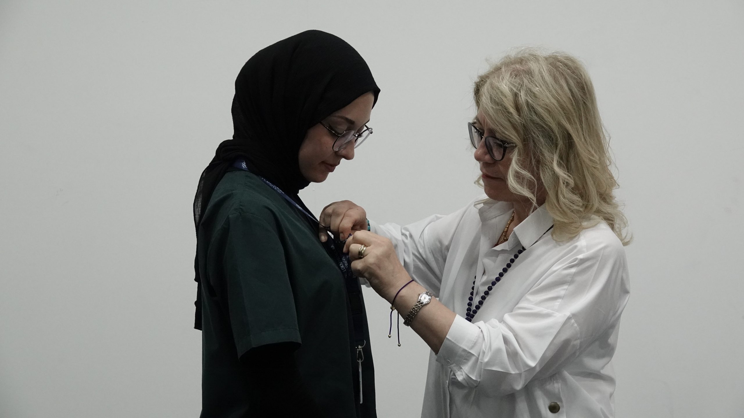 Ebelik bölümü 1. ve 2. sınıf öğrencilerimiz, üniversitemiz yönetimi ve ebelik bölümü akademisyenlerinden rozetlerini teslim alırken duygusal anlara şahit olundu ve klinik öncesi tavsiyerlerini aldılar.