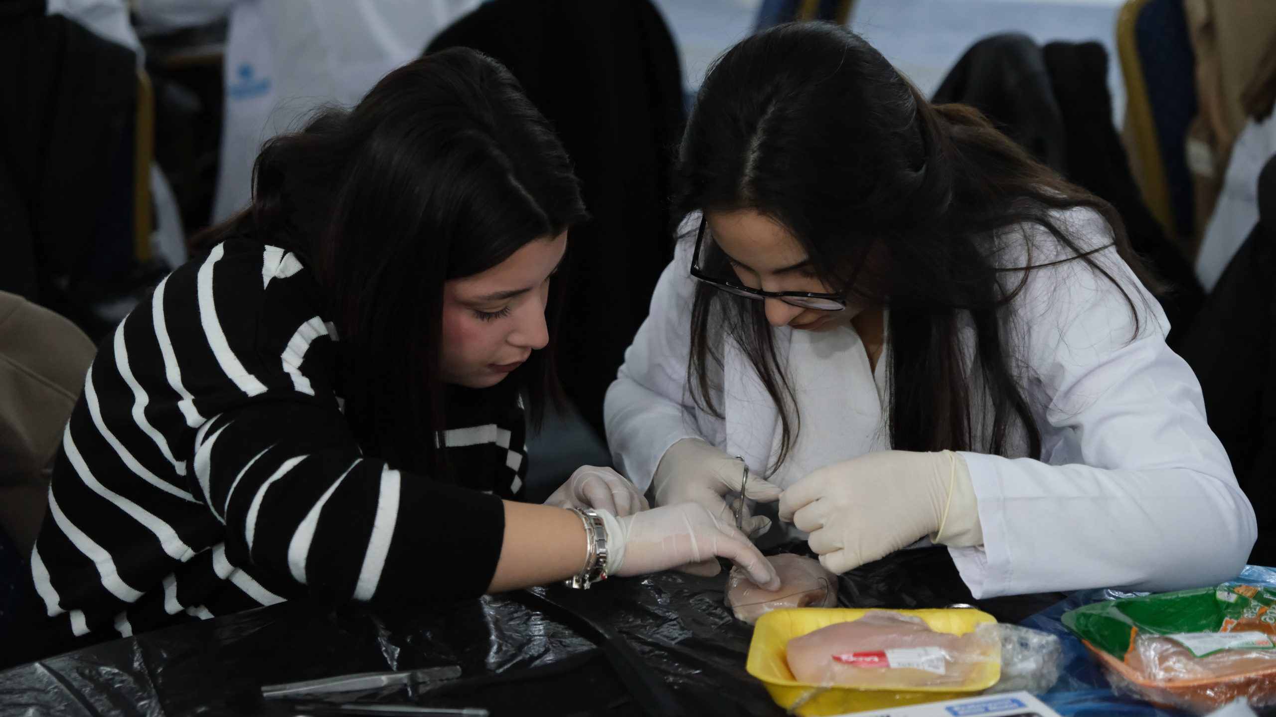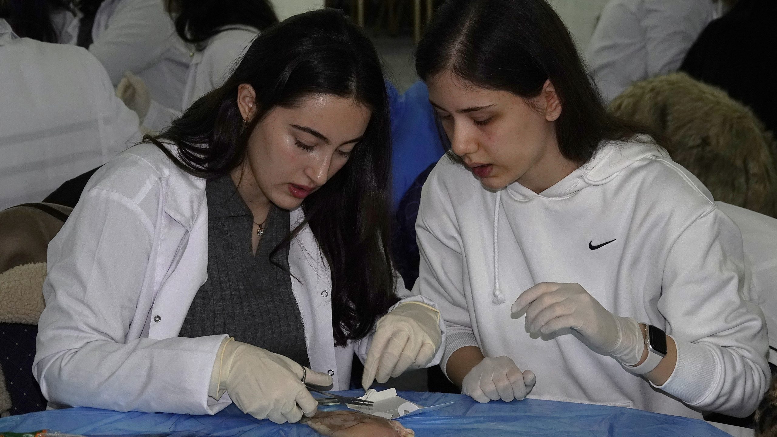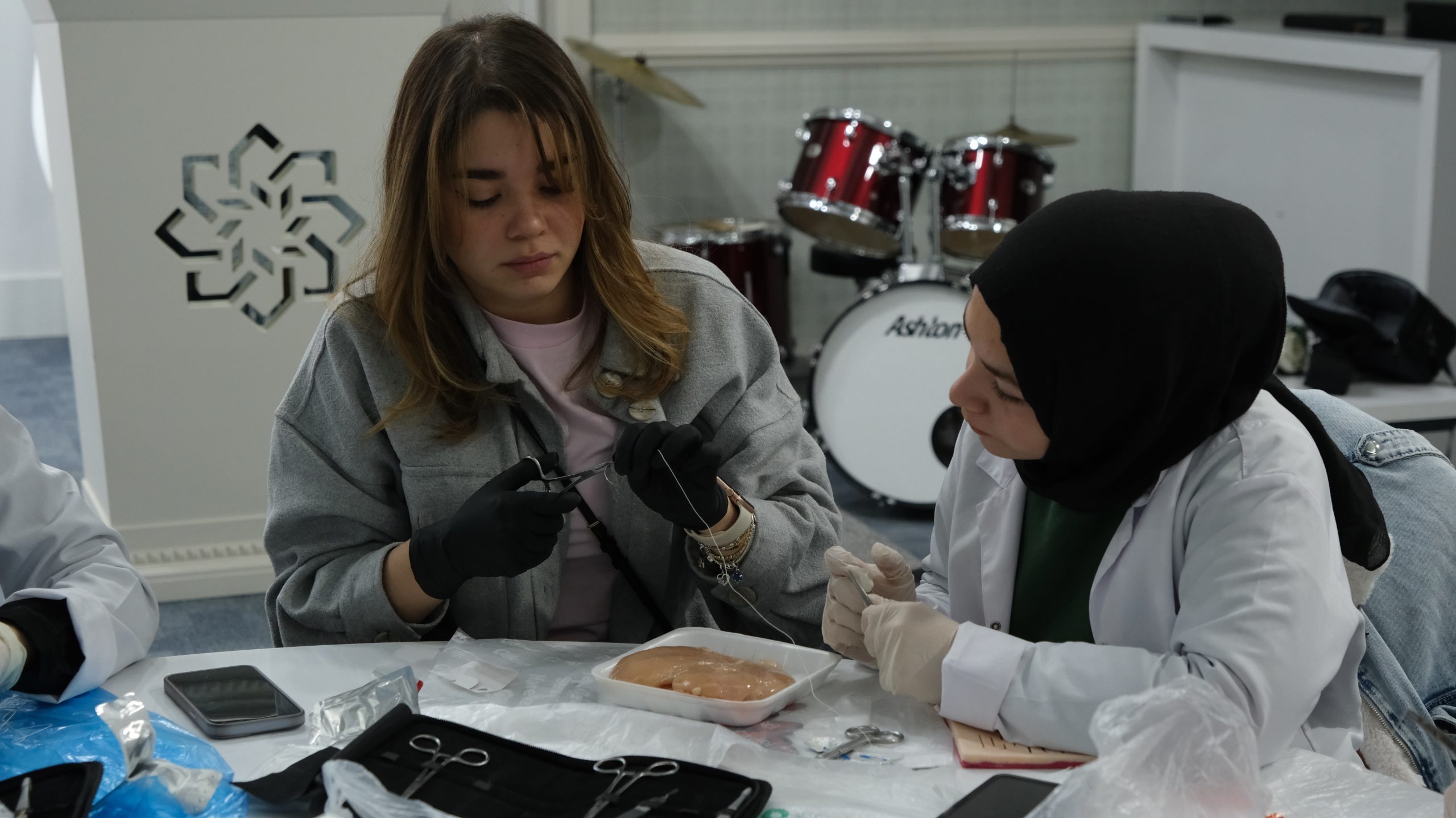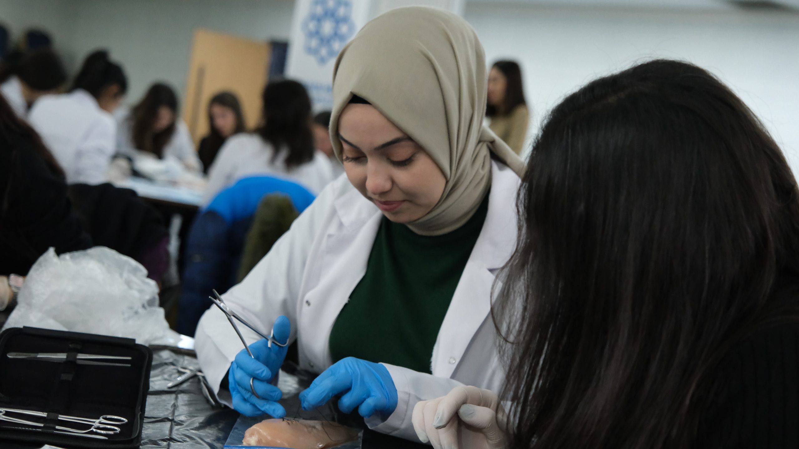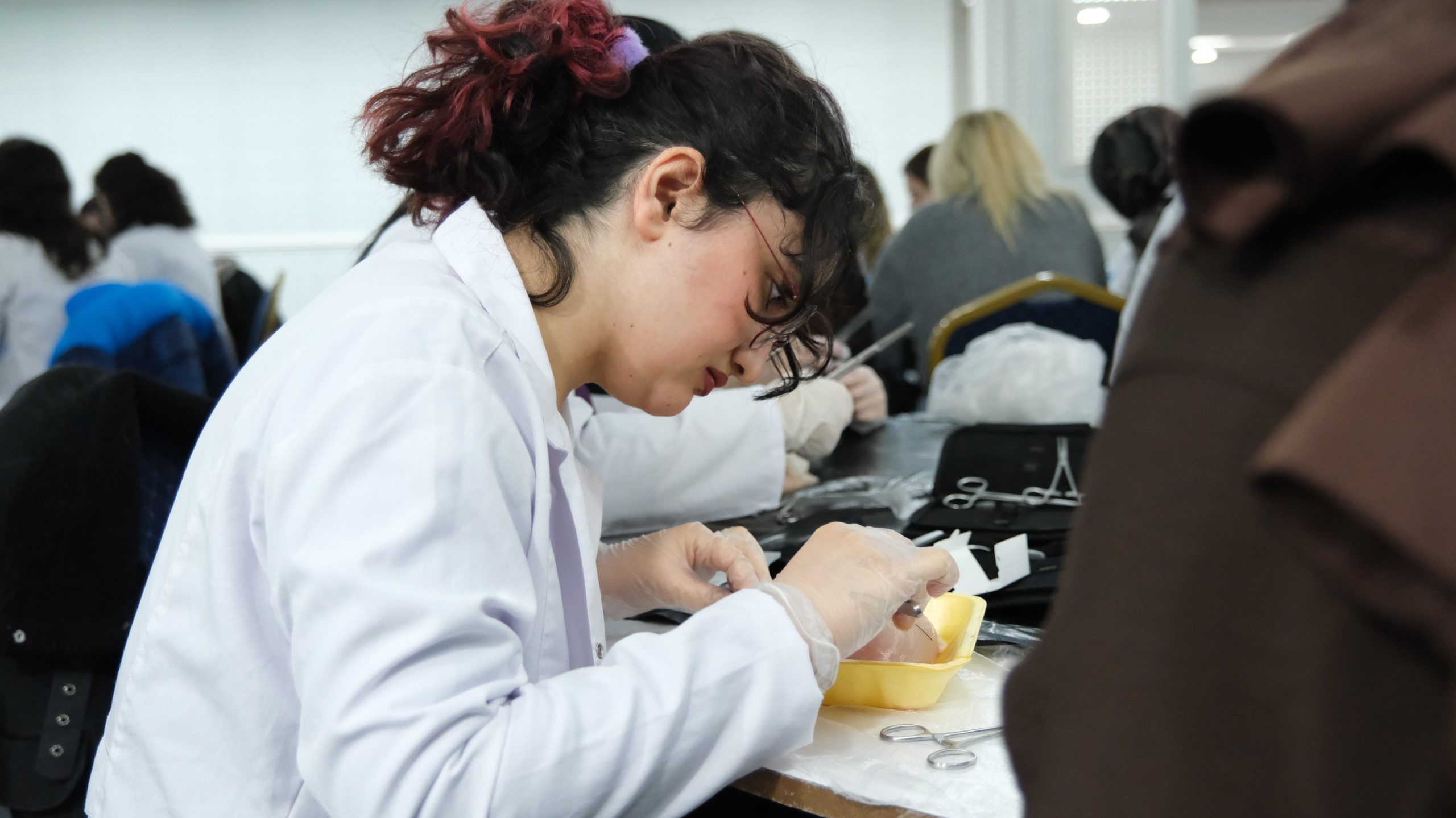 Bu sene 3.sü gerçekleşen workshopa ilgi yoğundu. Düzenleme kurulundaki Akademisyenlerin gözetiminde katılımcı öğrenciler tavuk eti üzerinde Sütur atma çalışmalarını gerçekleştirdi.