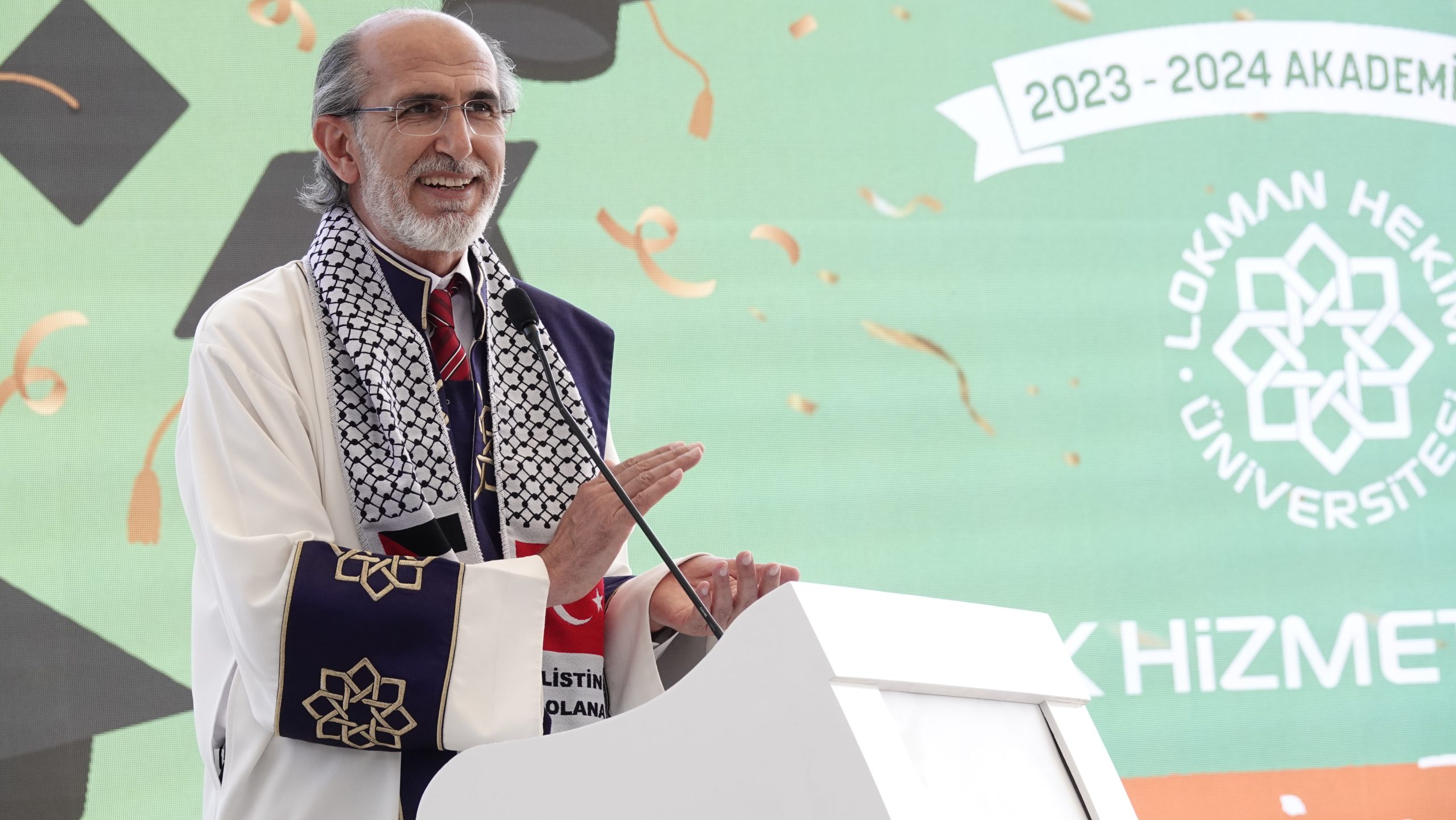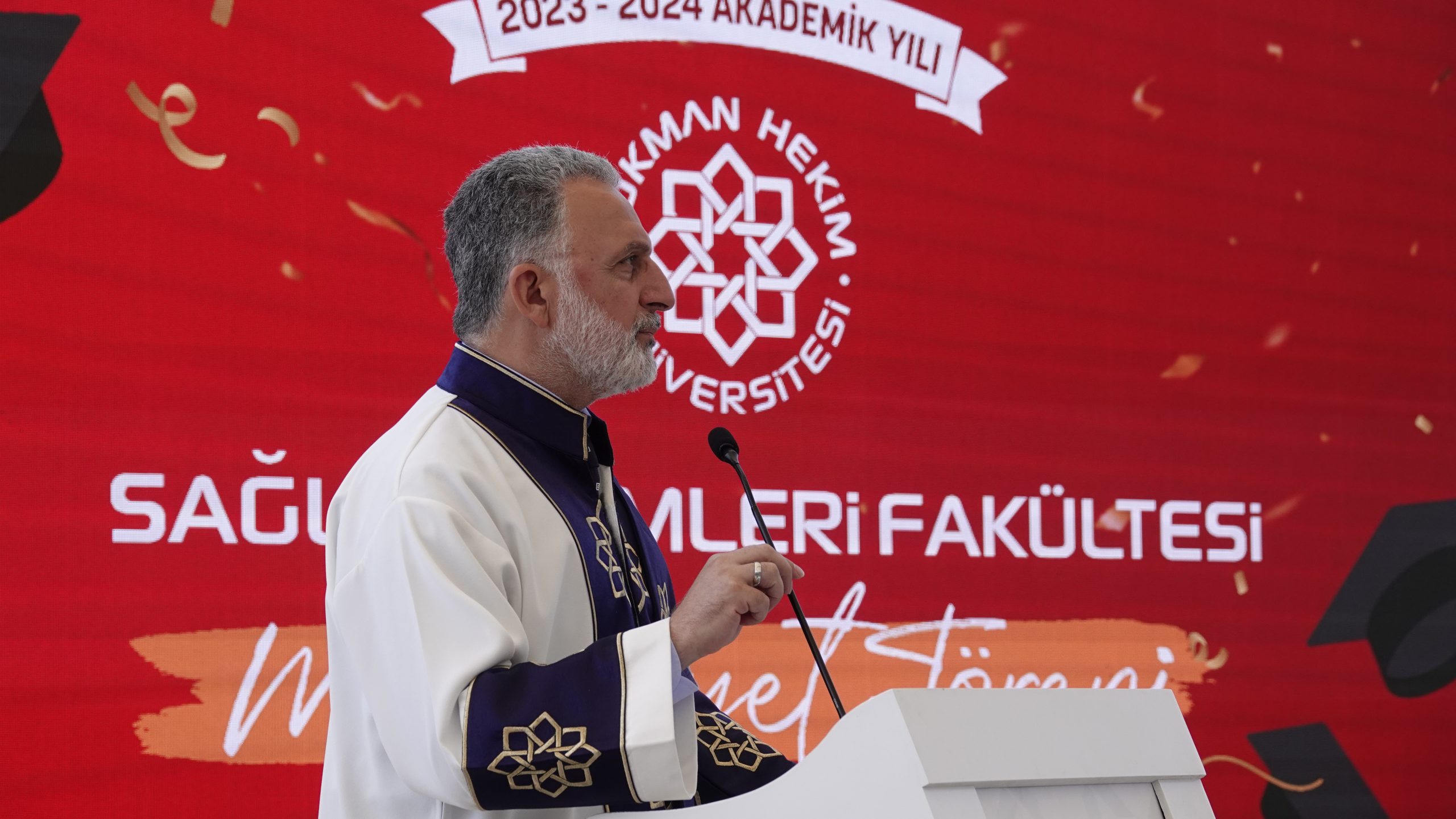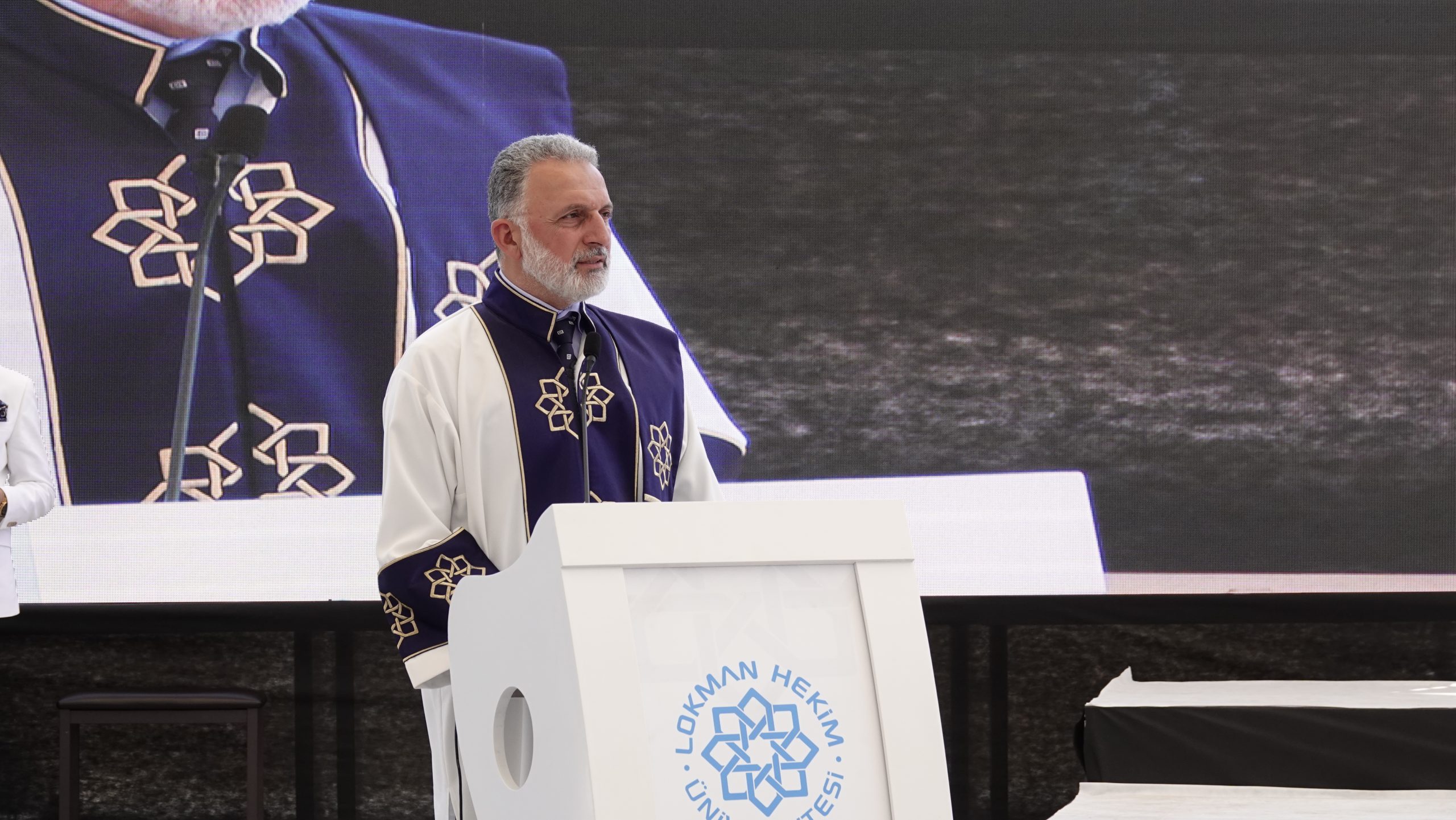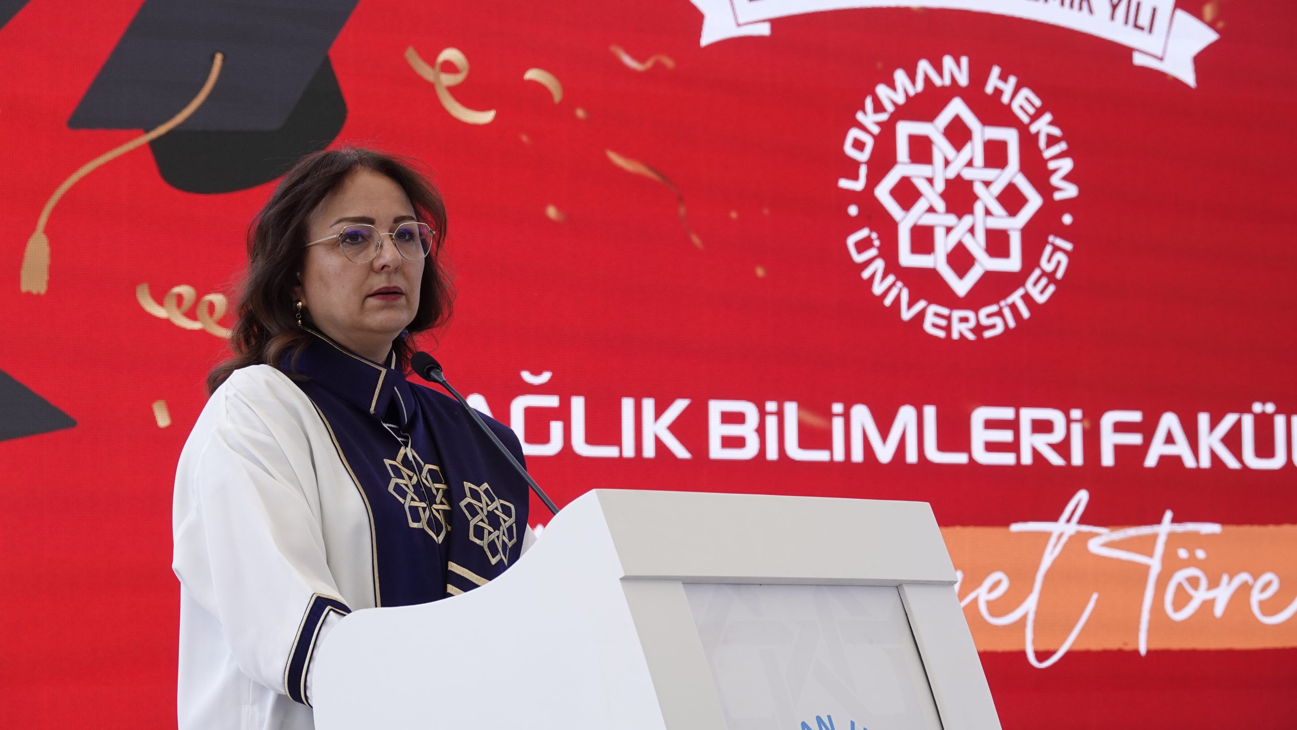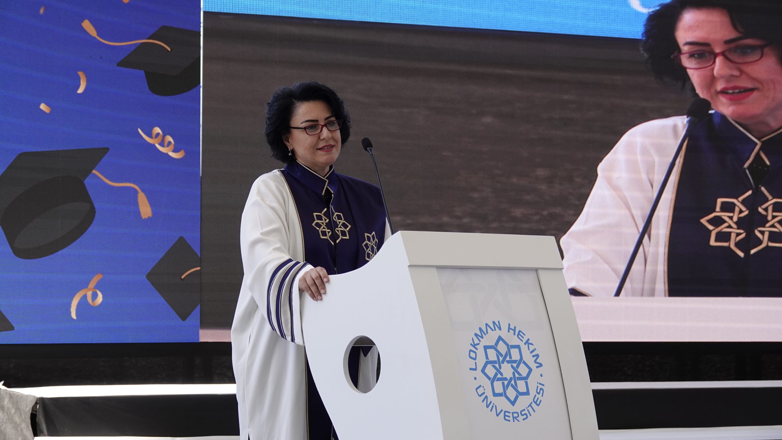 Rektörümüz Prof. Dr. Fatih GÜLTEKİN, anlattığı kısa hikayelerle mezun öğrencilerimize değerli nasihatlerde bulundu. “Lokman Hekim Üniversitesi’nden mezun olmak, bir ayrıcalıktır,” diyerek genç mezunlara hitap eden GÜLTEKİN, “Sizler, bu üniversitenin gurur kaynağısınız. Lokman Hekimli olmanın gururunu daima taşıyın. Bizler, hayat yolculuğunuzda her zaman yanınızda olacağız,” mesajını verdi.
