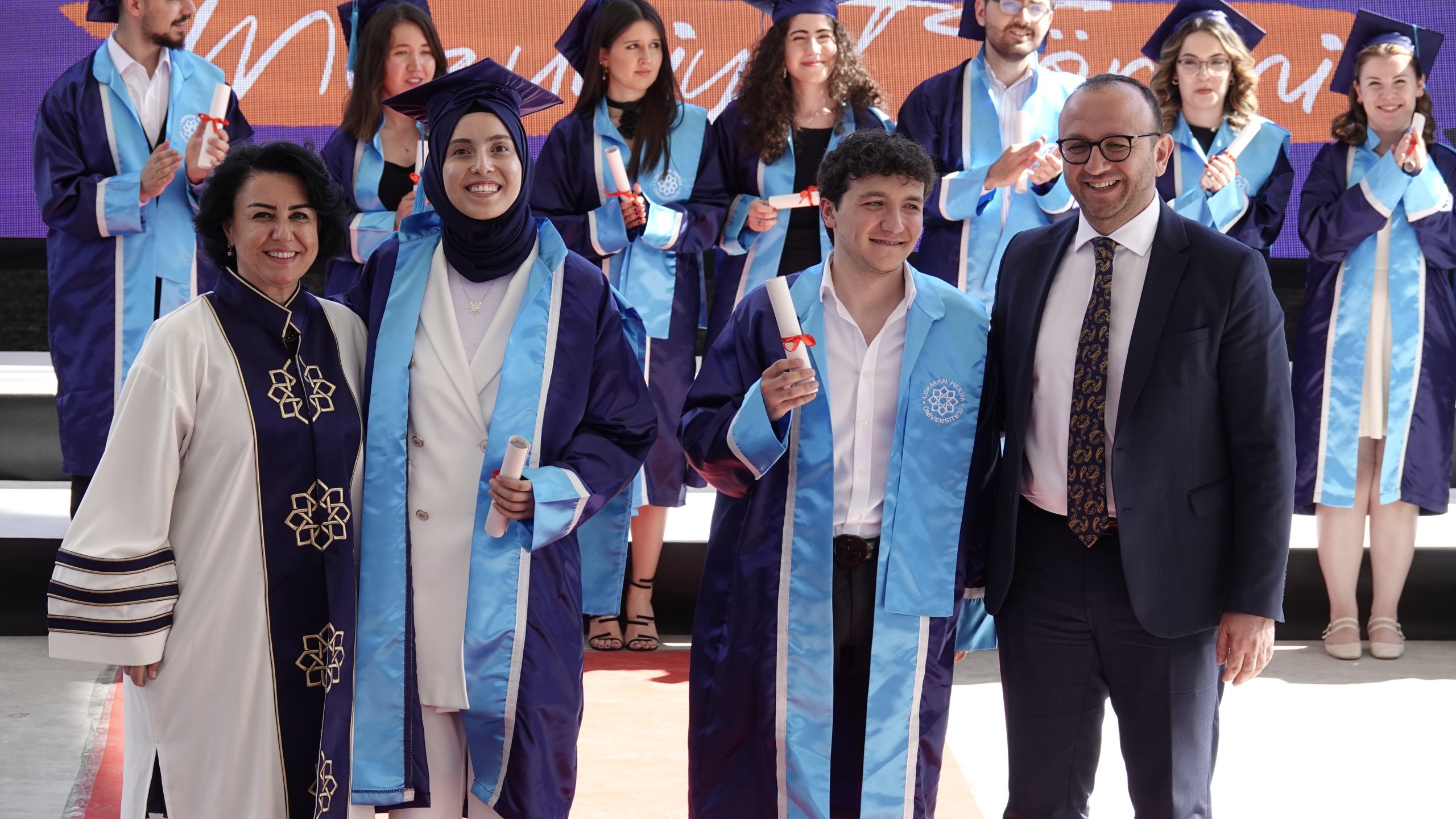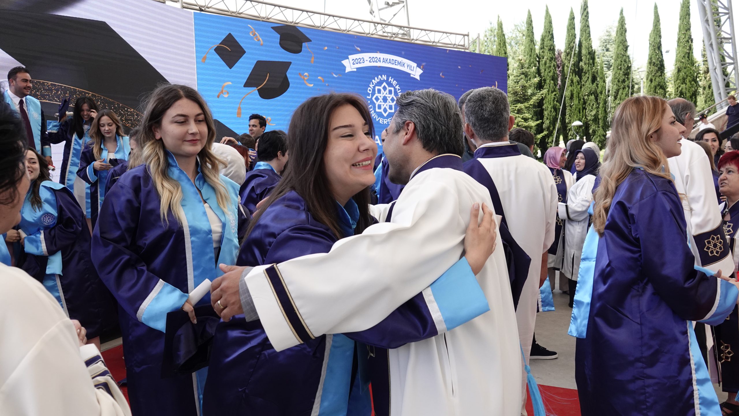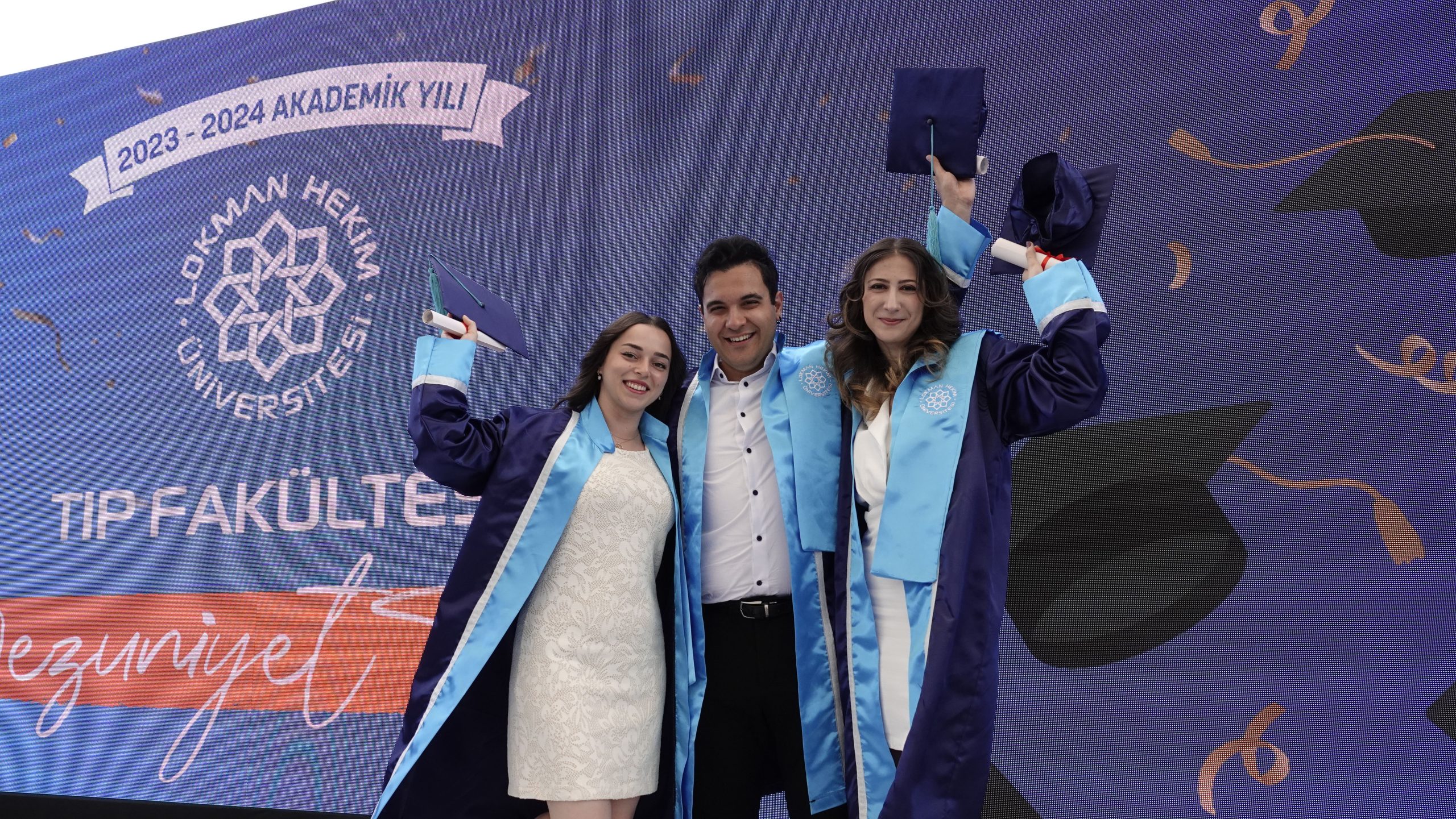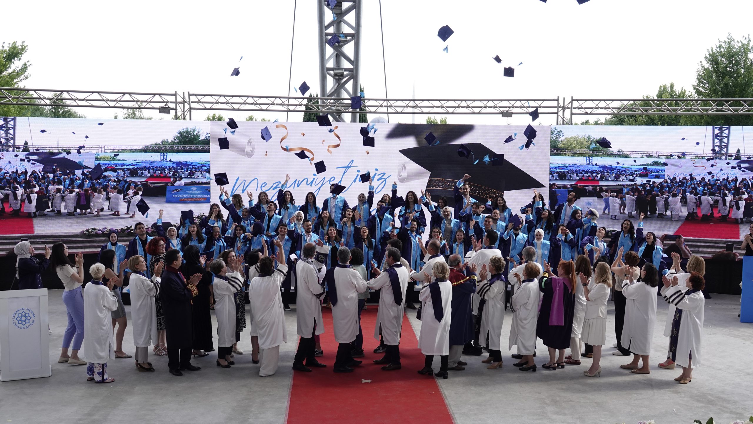 Lokman Hekim Üniversitesi, 2023-2024 akademik yılı lisans ve önlisans mezunlarını büyük bir coşkuyla uğurladı. 1-2 Temmuz 2024 tarihlerinde Batıkent Haydar Aliyev Parkı’nda gerçekleştirilen mezuniyet töreninde 460 lisans ve 600 önlisans öğrencisi, diplomalarını almanın haklı gururunu yaşadılar.