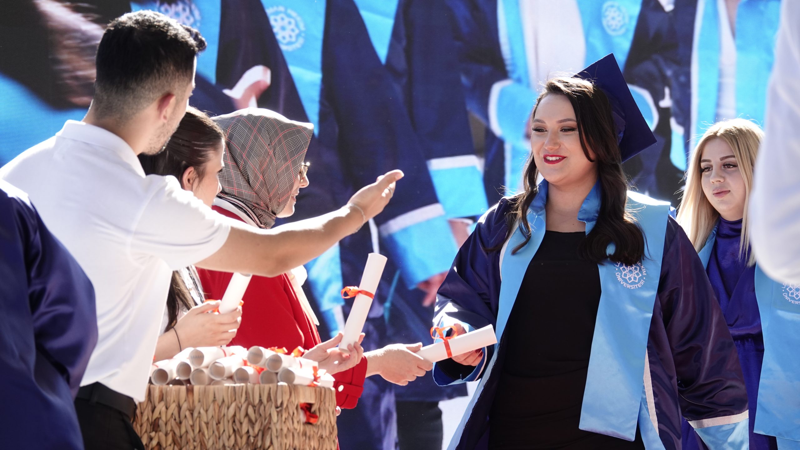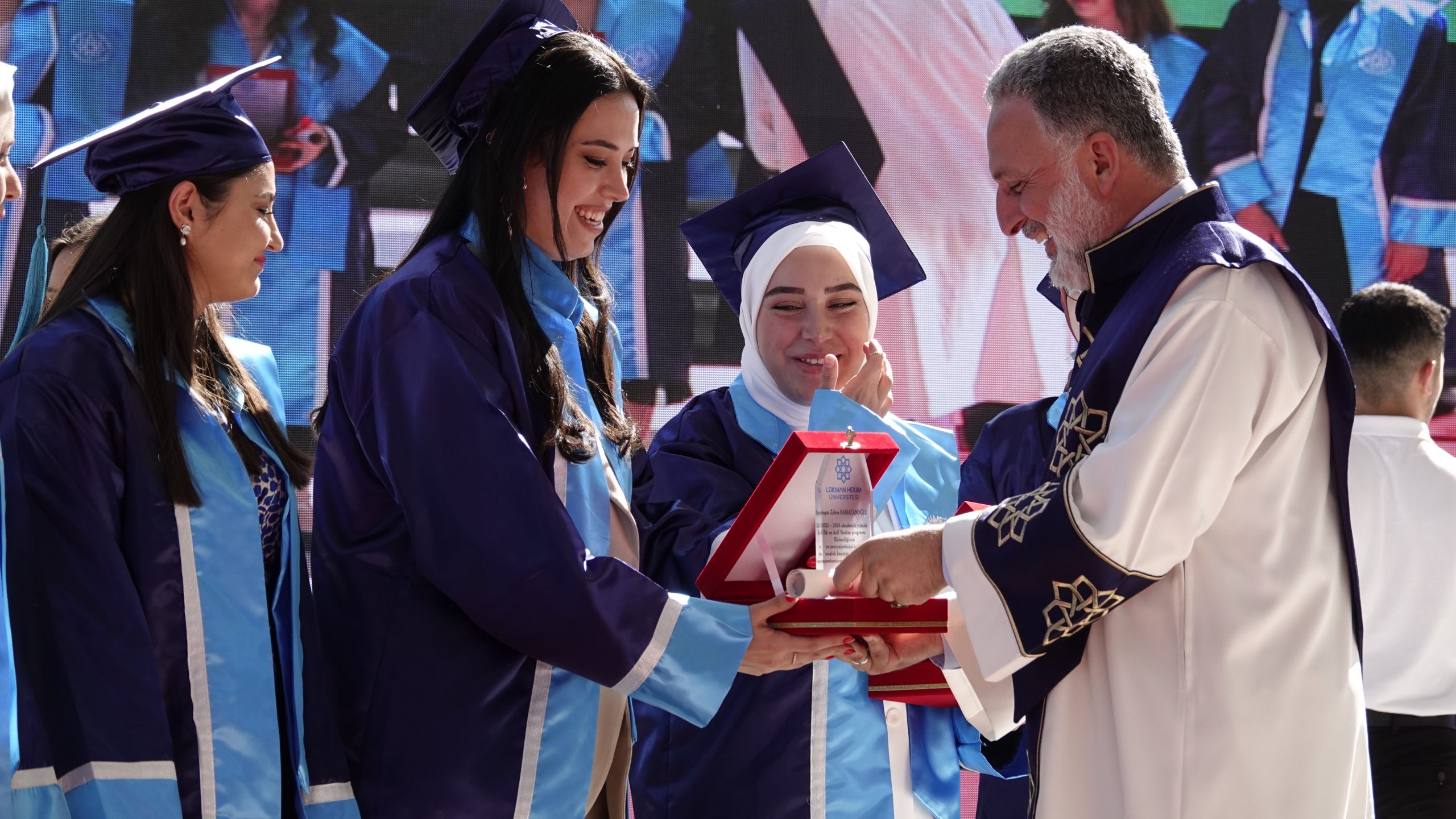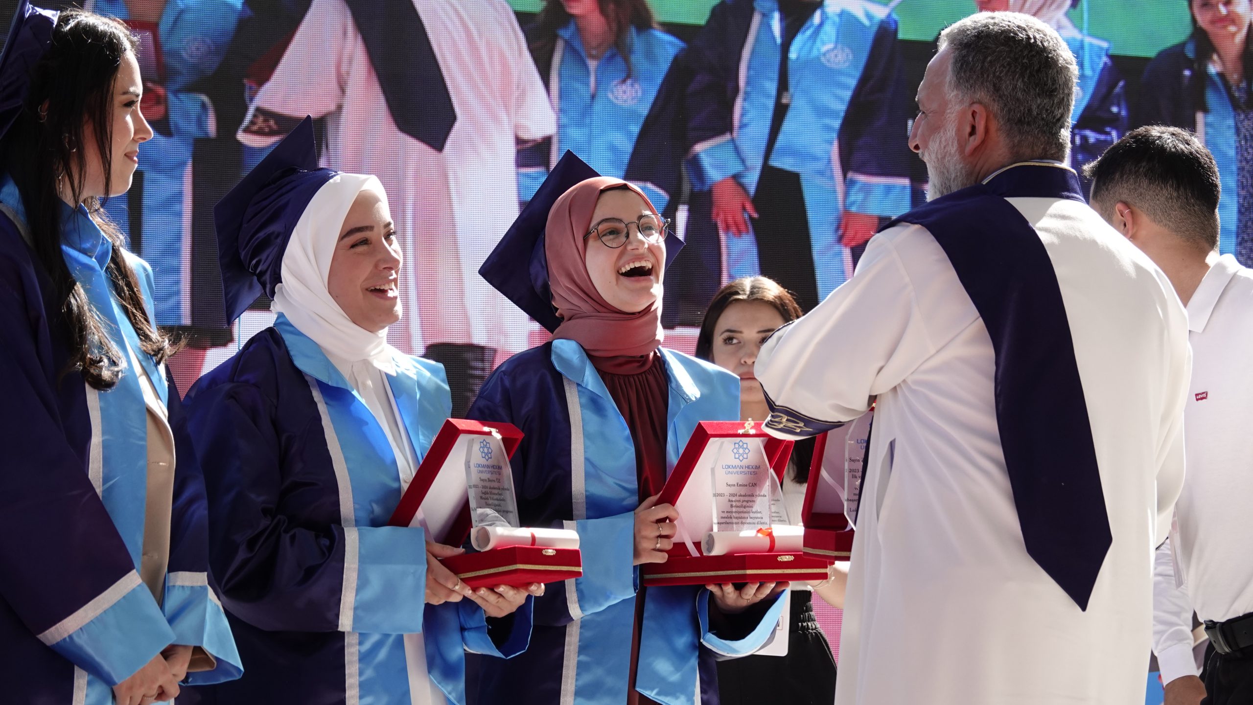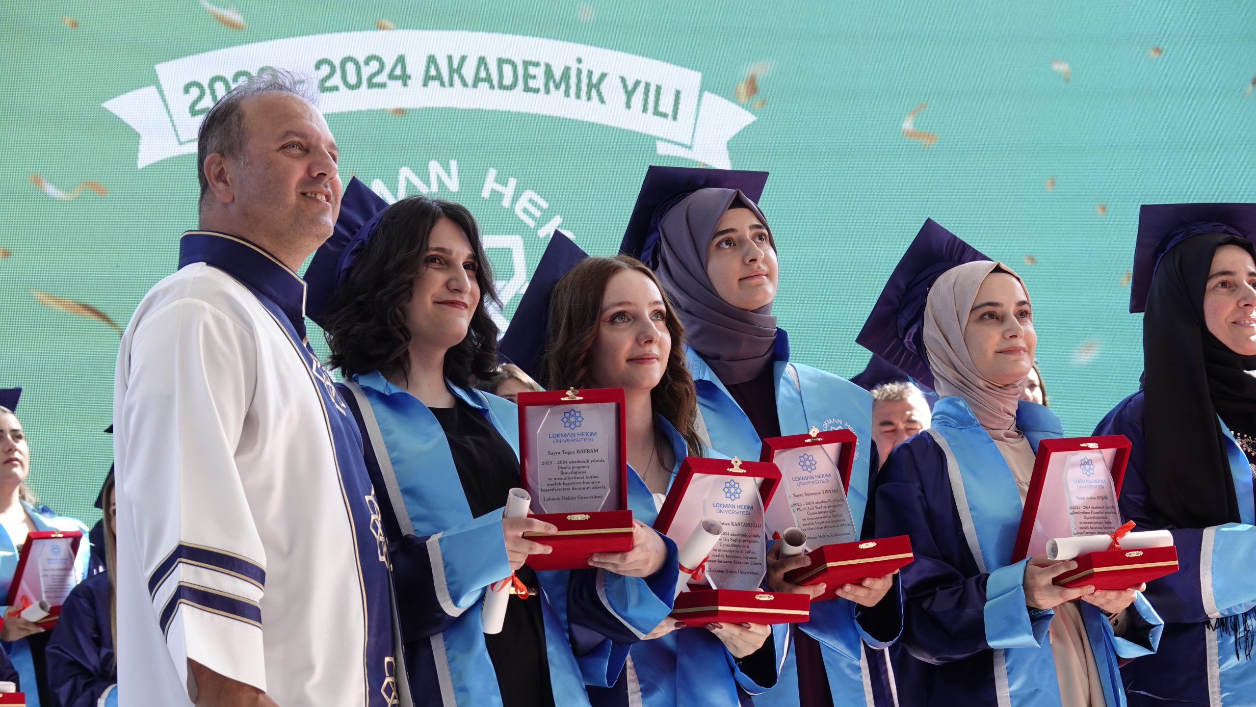 Lokman Hekim Üniversitesi, 2023-2024 akademik yılı lisans ve önlisans mezunlarını büyük bir coşkuyla uğurladı. 1-2 Temmuz 2024 tarihlerinde Batıkent Haydar Aliyev Parkı’nda gerçekleştirilen mezuniyet töreninde 460 lisans ve 600 önlisans öğrencisi, diplomalarını almanın haklı gururunu yaşadılar.