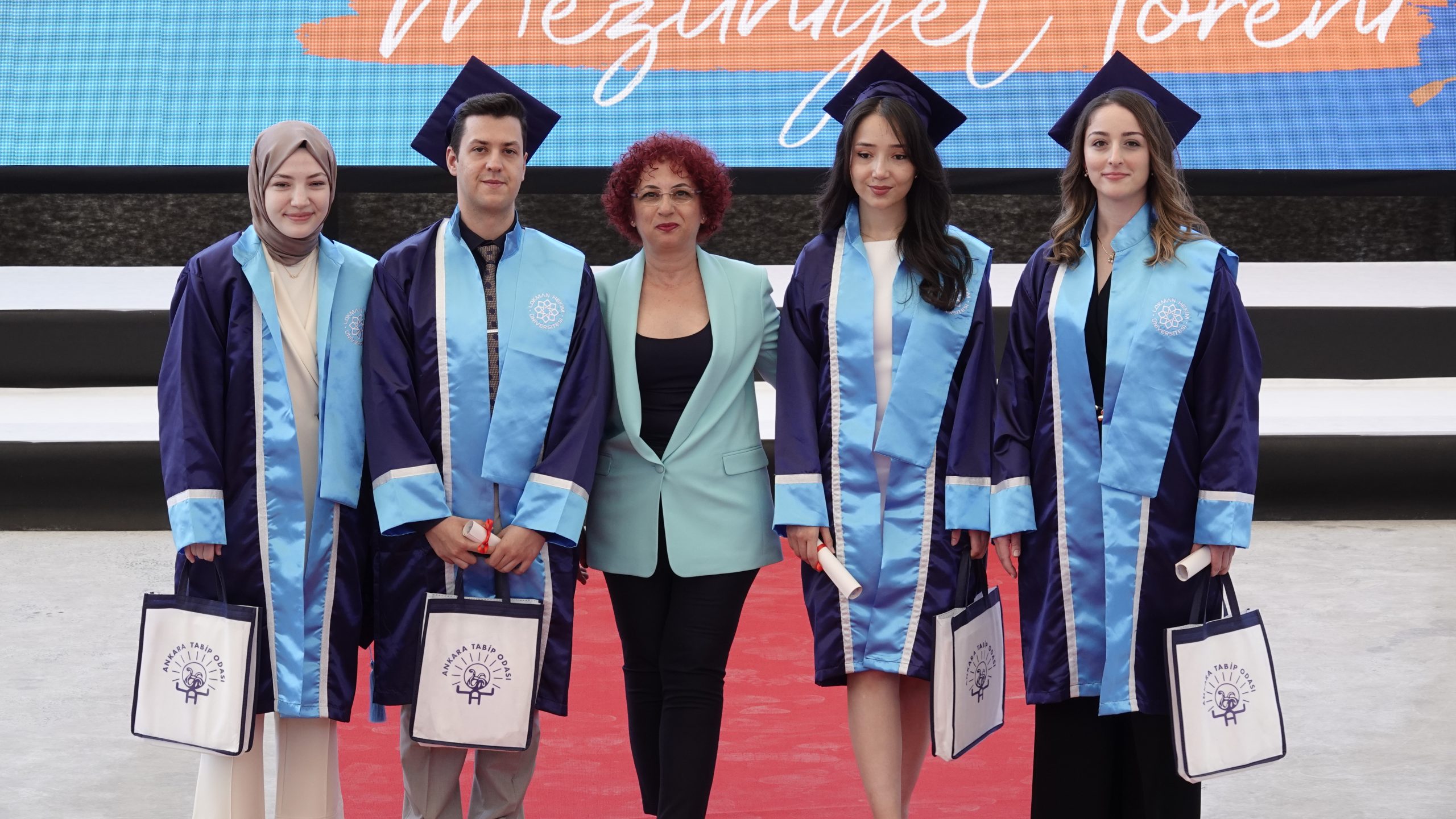 Törenin başlangıcında Lokman Hekim Üniversitesi Oda Müziği Topluluğu Korosu, etkileyici performanslarıyla katılımcılara unutulmaz anlar yaşattı. Bu yıl ilk öğrencilerini mezun eden Tıp Fakültesi ve Diş Hekimliği Fakültesi öğrencileri, bu tarihi anı aileleri, hocaları, sevdikleri ve arkadaşları ile paylaştılar.