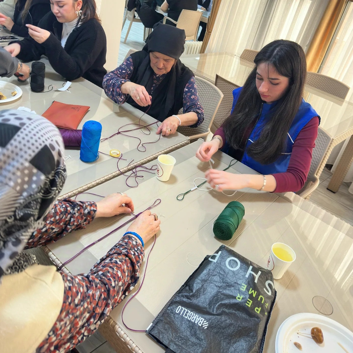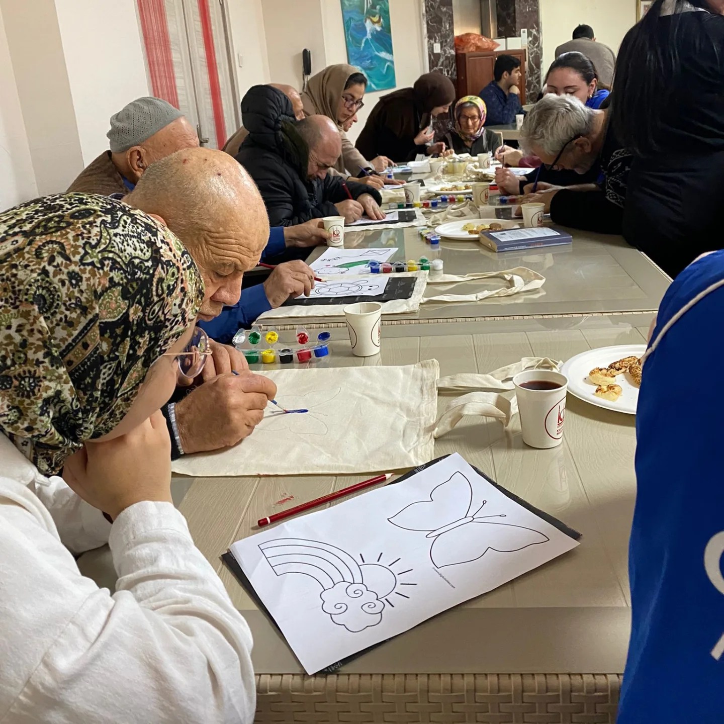 Ziyaret kapsamında bez çanta boyama, örgü, bileklik, ahşap yakı kitap ayracı yapımı gibi atölyeler gerçekleştirildi. Atölyelerde öğrencilerimiz ve huzurevi sakinleri bir araya gelerek ortak çalışmalar ortaya koydu. Bu esnada öğrencilerimiz, büyükleriyle sohbet etme imkânı da buldu. Onlara “Gençliğinize geri dönebilseydiniz neyi farklı yapardınız?”, “Hayatınızın en güzel anını tekrar yaşamak isteseniz hangi an olurdu?” gibi sorular yönelttiler. Atölyelerin sonunda, huzurevi sakinleri ve öğrencilerimize yaptıkları el ürünleri hatıra olarak kaldı.