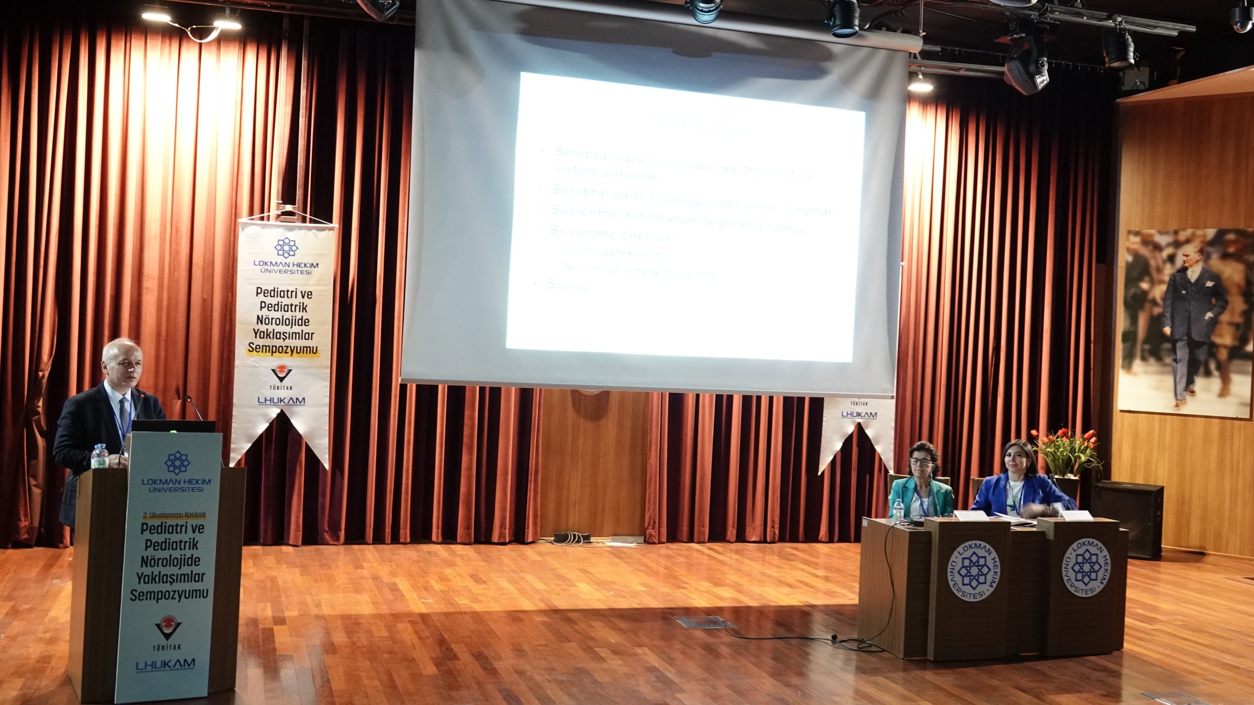 Lokman Hekim Üniveristesi Kas ve Sinir Hastalıkları Ugulama ve Araştırma Merkezi tarafından TÜBİTAK destekli 2. Uluslararası Katılımlı Pediatri ve Pediatrik Nöroloji’de Yaklaşımlar Sempozyumu 25 – 26 Mayıs 2024 tarihleribde Ufuk Üniversitesi Rıdvan Ege konferans salonunda gerçekleştirildi. Pediatristlerin, çocuk nöroloji alanında çalışan hekimlerin, fizyoterapistlerin ve sağlık alanındaki öğrencilerimizin katılımı ile güncel veriler ışığında temel konuları ele alarak tartışmak, geliştirmek ve bilinçlenmeye katkıda bulunmak amacıyla düzenlenen sempozyuma Uluslararası Çocuk Nörloji Derneği Başkanı Pratibha SINGHI ve Çocuk Pediatristi Sunit SUNGHI’nin yanı sıra alanında uzman bir çok konuşmacı yer aldı. Baş Ağrılı Hastaya Yaklaşım, Serebral Palside Rehabilitasyon, Vitamin B12 ve Nöroloji, Serebral Palside Beslenme gibi bir çok konunun yer aldığı sempozyumda sözel sunumlar ve birçok olgu sunumu ilgiyle karşılandı. Sempozyum başkanlığını üstelenen Prof. Dr. A. Ayşe KARADUMAN ve Orıf. Dr. F. Müjgan SÖNMEZ tüm konuşmacı ve katılımcılara teşekkür ederken bu sempozyumların pediatri alanında gelişmelere ışık tuttuğunu ve devamlılığının olacağını iletti.