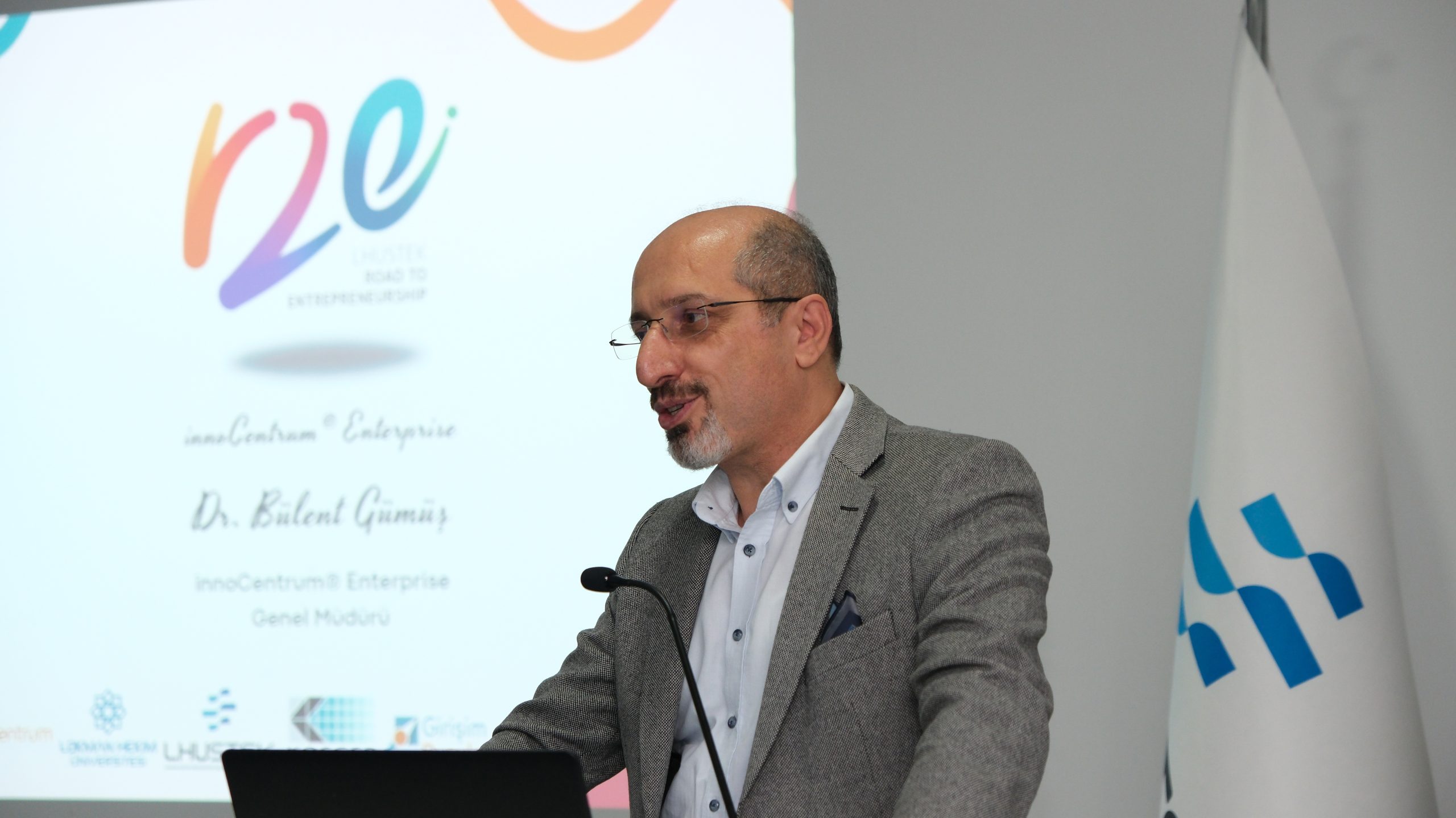 Doç. Dr. Deniz Yiğit’in ardından R2E eğitmenlerimizden InnoCentrum CEO’su Dr. Sayın Bülent GÜMÜŞ de konuşmalarını gerçekleştirerek girişimcilerimize teşekkür etti. Konuşmasında girişimcilerimize bu yolda attıkları adımların gerek üniversite gerekse ülkemiz kapsamında önemine dikkat çeken GÜMÜŞ, tüm takımlara başarılar diledi.
