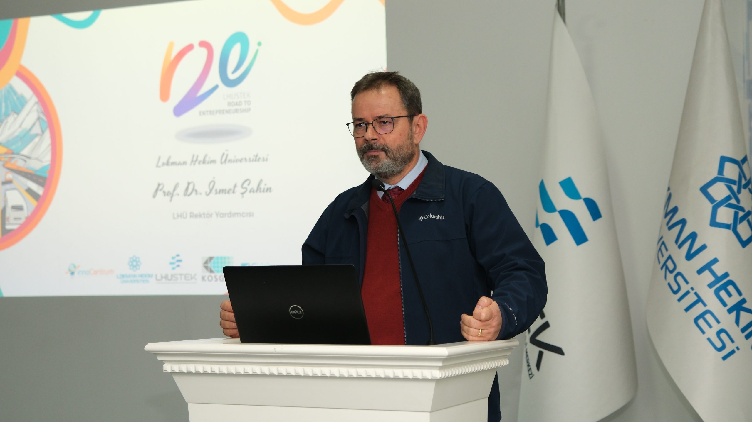 Açılış konuşmalarının ilkini gerçekleştiren LHUSTEK Direktörü Doç. Dr. Sayın Deniz YİĞİT, konuşmalarında LHUSTEK’in Road to Entrepreneurship programa katılım gösteren öğrencilerin istatistiklerini vererek girişimci çeşitliliğindeki zenginliği gözler önüne serdi. R2E programı finaline kadar kat edilen aşamalardan ve gerçekleştirilen etkinliklerden bahsettiği konuşmasında, “Bugün aramızda olan takımların hepsi gösterdikleri harekete geçme ve üretme cesaretleri nedeniyle gönlümüzde birincidir” diyerek anlamlı bir konuşmaya imza attı.